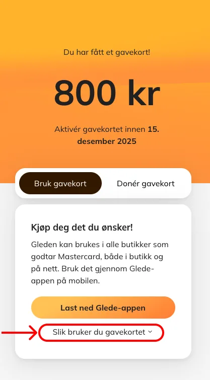 När detta är klart kommer ditt presentkort att synas i Glede appen.