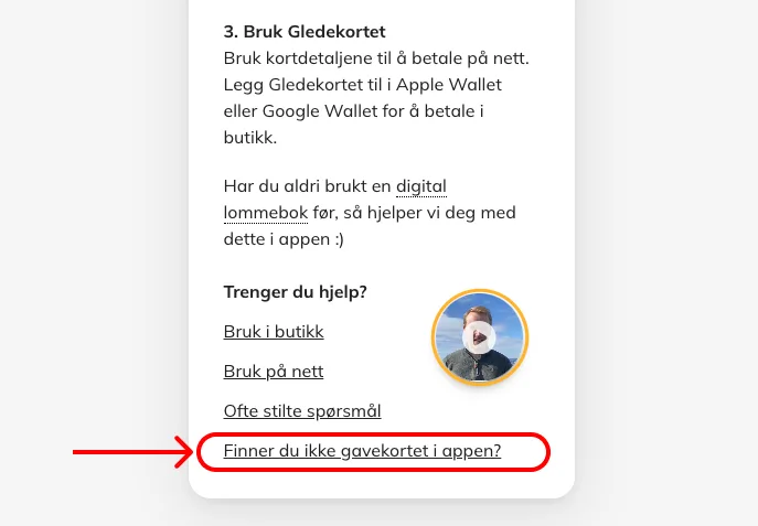- Scrolla ner till slutet av avsnittet "Hur man använder presentkortet"